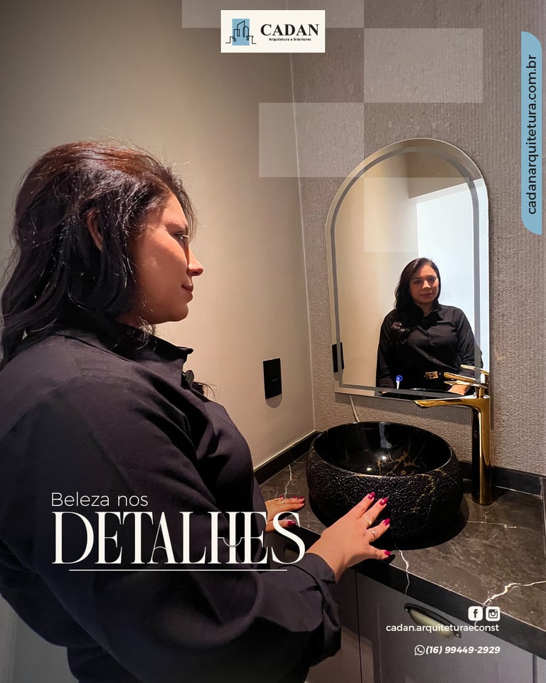 O lavabo é considerado a vitrine da casa, já que é um dos espaços mais utilizados por visitantes. Apesar de pequeno, é nele que podemos aplicar soluções criativas que valorizam o ambiente e transmitem sofisticação. Móveis planejados, escolha assertiva de louças, revestimentos e iluminação transformam um espaço simples em um verdadeiro destaque. Na Cadan, cada lavabo é projetado para unir estética e praticidade. Utilizamos materiais que agregam valor e trazem personalidade, tornando o ambiente único. Esse tipo de cuidado demonstra atenção aos detalhes e reforça a identidade da residência, impressionando quem entra. 📲 Quer transformar seu lavabo em um ambiente sofisticado em Franca? Entre em contato com a Cadan Arquitetura e Interiores: (16) 99449-2929 | @cadan.arquiteturaeconst