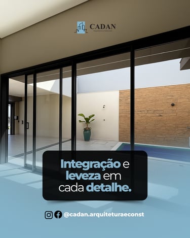 A transparência e a integração entre os ambientes são marcas registradas da arquitetura contemporânea. Além de valorizar o design, as esquadrias de vidro permitem a entrada de luz natural, aumentam a sensação de amplitude e tornam o espaço mais acolhedor e sofisticado. Neste projeto da Cadan Arquitetura e Interiores, em Franca, cada detalhe foi pensado para unir funcionalidade e estética. A conexão entre área interna e externa cria um ambiente fluido, elegante e cheio de conforto — ideal para quem busca viver com mais harmonia e bem-estar. 📍 Conheça o escritório da Cadan Arquitetura e Interiores: Rua do Comércio 1650, sala 45 - Centro. 📲 (16) 99449-2929 | @cadan.arquiteturaeconst