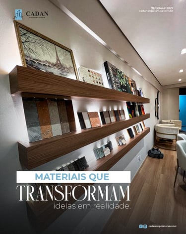 Cada projeto nasce de uma visão, mas é na escolha dos materiais que ele ganha textura, cor, profundidade e alma. No novo escritório da Cadan Arquitetura, reunimos um acervo completo de amostras que tornam o processo criativo ainda mais imersivo — aqui, o cliente pode tocar, comparar e visualizar cada detalhe que fará parte do seu futuro ambiente. Do porcelanato às pedras naturais, dos laminados às superfícies premium, cada opção foi selecionada para oferecer qualidade, durabilidade e estética. Esse cuidado garante projetos mais assertivos, personalizados e alinhados às expectativas de quem confia em nosso trabalho. Gostaria de viver essa experiência e descobrir quais materiais combinam com o seu estilo? Venha nos visitar! 📍 Rua do Comércio, 1650 – Sala 45, Centro, Franca/SP 📞 (16) 99449-2929