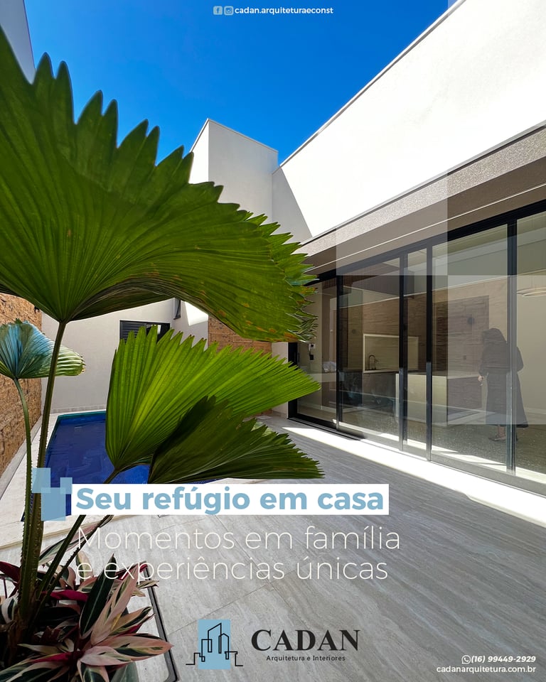 A área externa é um dos espaços mais desejados em uma casa, especialmente quando combina lazer, estética e funcionalidade. Ter uma piscina bem projetada, integrada ao ambiente e valorizada pela iluminação natural, transforma o dia a dia em momentos de descanso e convivência com a família e os amigos. Aqui na Cadan Arquitetura e Interiores, desenvolvemos áreas externas completas, com projeto paisagístico, escolha de revestimentos adequados e soluções de integração entre o interno e o externo. Dessa forma, cada espaço se torna único, funcional e agradável, valorizando ainda mais o imóvel e oferecendo qualidade de vida. 📍 Transforme sua área externa em Franca com a Cadan! Agende uma visita: Rua Gil José de Souza, 3765 – Jd. Maria Gabriela. 📲 (16) 99449-292