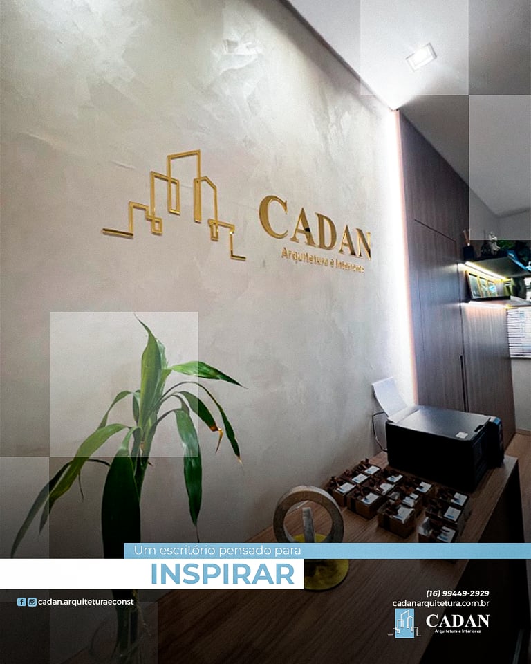 Cada detalhe do novo escritório da Cadan Arquitetura e Interiores foi planejado para transmitir a essência da nossa marca: elegância, identidade e cuidado em cada projeto. A composição em tons sofisticados, o logo em destaque e os elementos decorativos criam um ambiente acolhedor e cheio de personalidade, exatamente como acreditamos que a arquitetura deve ser. Este é o espaço onde ideias ganham forma, onde projetos começam a nascer e onde cada cliente é recebido com a atenção que merece. Mais do que um escritório, criamos um ambiente que reflete a forma como vemos o design: funcional, acolhedor e visualmente marcante. Venha conhecer o novo espaço da Cadan! 📍 Rua do Comércio, 1650 – Sala 45, Centro, Franca/SP 📞 (16) 99449-2929